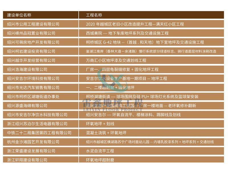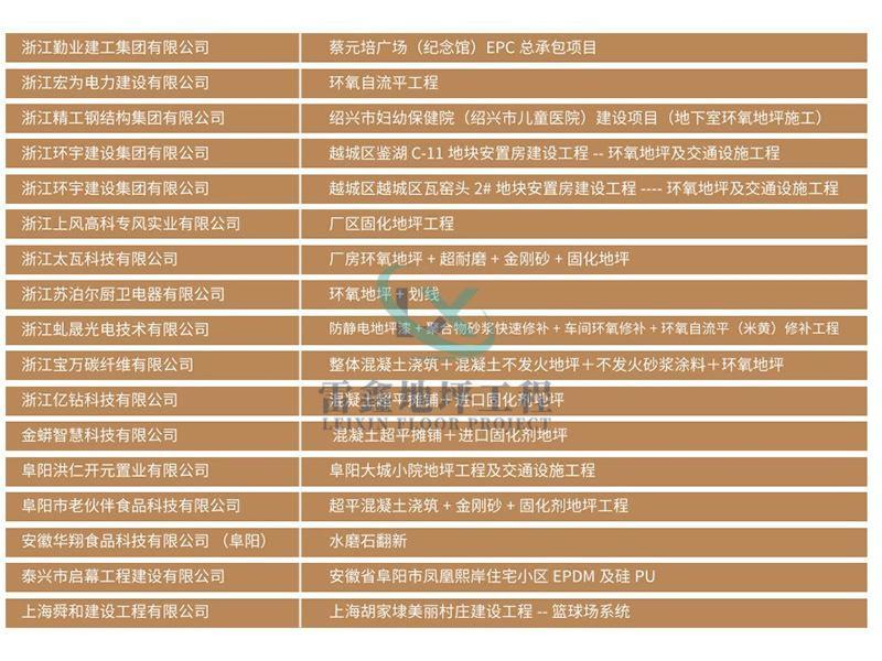 浙江雷鑫地坪工程有限公司是一家集研发、生产、销售、整体地坪施工与涂料一体化的现代化专业公司,公司位于浙江省绍兴市越城区,公司秉承诚信、质优、专业的理念,以质量为先、服务对象满意至上、崇精尚专的企业文化不断完善自我,提高自我。公司立足绍兴,辐射全国,多年来参与浙江省核心项目以及多起国家大型项目的设计与建设。公司拥有国内外先进水平的混凝土地坪仪器,混凝土面层施工的各种大、中、小型进口设备及地坪碾磨机械等设备,拥有一支领略时代代表中国高标准的专业地坪施工队伍。