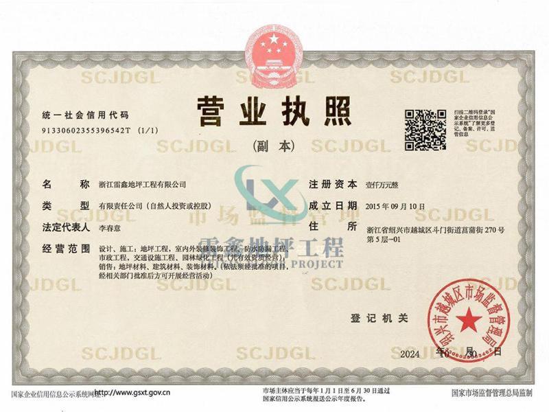 浙江雷鑫地坪工程有限公司是一家集研发、生产、销售、整体地坪施工与涂料一体化的现代化专业公司,公司位于浙江省绍兴市越城区,公司秉承诚信、质优、专业的理念,以质量为先、服务对象满意至上、崇精尚专的企业文化不断完善自我,提高自我。公司立足绍兴,辐射全国,多年来参与浙江省核心项目以及多起国家大型项目的设计与建设。公司拥有国内外先进水平的混凝土地坪仪器,混凝土面层施工的各种大、中、小型进口设备及地坪碾磨机械等设备,拥有一支领略时代代表中国高标准的专业地坪施工队伍。
